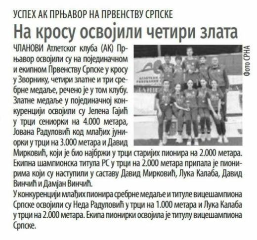 Prvo mjesto osvojila je Mirjana Kljajić, učenica osmog razreda Osnovne škole „Nikola Tesla“ Prnjavor, drugo mjesto osvojila je Nikol Kuzmanović, učenica petog razreda Osnovne škole „Ivo Andrić“ Kulaši, dok je Viktoria Andreata, učenica sedmog razreda Osnovne škole „Petar Kočić“ Šibovska osvojila treće mjesto.