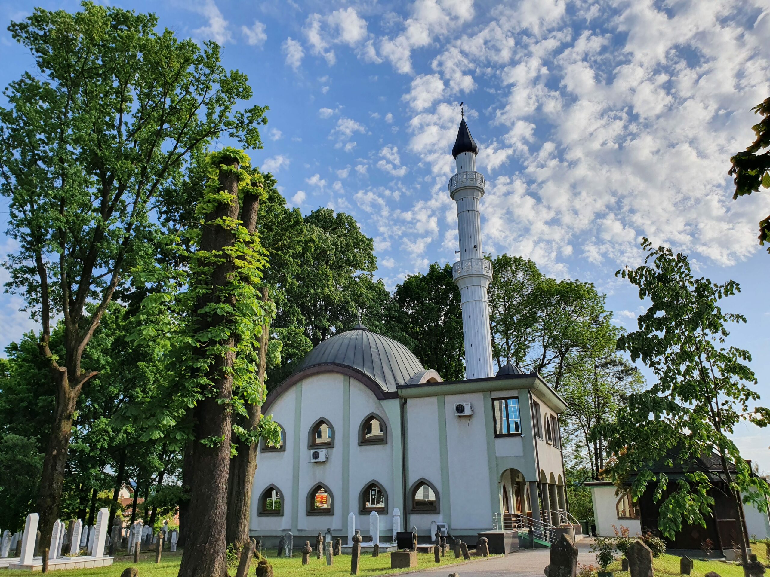 Прњаворска Градска џамија налази се на мјесту гдје су изграђени први вјерски објекти које су муслимани користили за вјерске потребе и духовни живот. Први месџид, односно вјерски објекат без мунаре саграђен је 1776. године, а 1800. године кров је прекривен даском/шиндром и изграђена је осмоугаона дрвена мунара чиме месџид добија статус џамије. Градска џамија реконструисана је више пута и то 1850. године, затим од 1959. до 1961. године када је изграђена бетонска мунара. Током ратних дешавања, Градска џамија је порушена у јуну 1992. године, а обнова је почела 1. новембра 2001. године. Свечано је отворена 16. јула 2006. године. Харем Градске џамије заједно са старим нишанима одлуком Комисије за очување националних споменика, 2003. године проглашен је националним спомеником Босне и Херцеговине. У близини Градске џамије до средине 20. вијека постојао је и мектеб, односно вјерска школа.