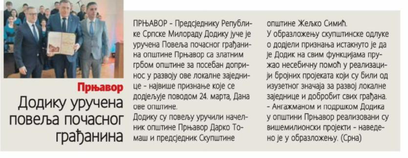 Глас Српске, 24. март